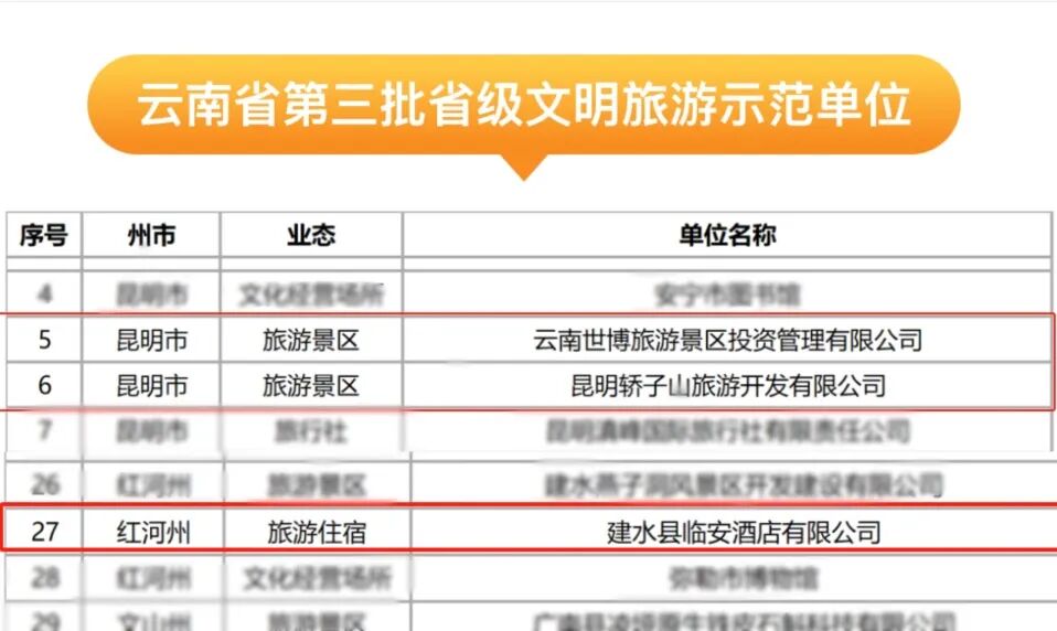 中華民族自古崇尚“讀萬卷書,行萬里路”,旅游是修身養性之道,旅途中的文明是最美的風景。近日,云南省文化和旅游廳公示了“第三批省級文明旅游示范單位”名單,華僑城云南公司旗下云南世博旅游景區投資管理有限公司、昆明轎子山旅游開發有限公司、建水縣臨安酒店有限公司上榜。去年,建水朱家花園、香格里拉巴拉格宗景區項目公司也入選了“第二批省級文明旅游示范單位”。